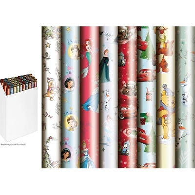 Dárkový balicí papír s motivy pohádkových postavicek Disney. Baleno v rolích, šířka role 70 cm, délka role 2 m. Mix 10 motivů, nelze vybrat. © Disney
