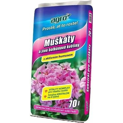 AGRO Substrát pro muškáty a jiné balkónové květiny je speciálně vyvinut pro potřeby pěstování balkónových rostlin, které potřebují k růstu a bohatému kvetení vysokou dávku...