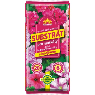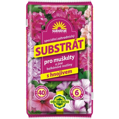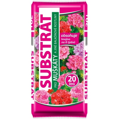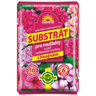 Substrát je určen pro sázení a přesazování muškátů a jiných balkónových rostlin. Obsahuje světlou a tmavou rašelinu, jemně tříděný kůrový kompost, jemně drcený zeolit, hnojivo...