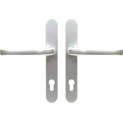 F1 Stříbrná - V provedení klika - madlo. - Masivní hliníkové kování pro vstupní dveře. - Klika pevně uložená ve štítu. - Zakryté šrouby na vnitřním štítu...