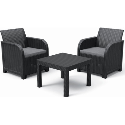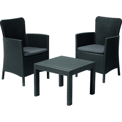 Balkonový set SALVADOR graphite + cool grey značky Keter. - rozměry: stůl 59 x 59 x 43 cm 2 x křeslo 62 x 60 x 89 cm - speciálne pro balkony a malé zahrady -...