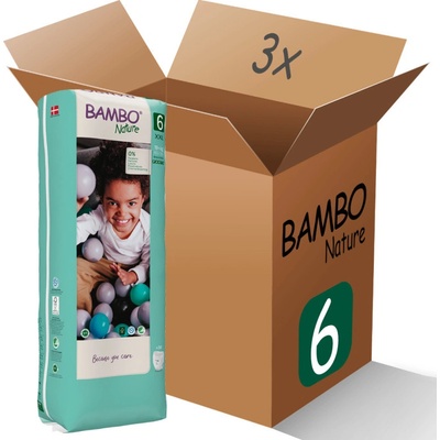 Výhodné balení 3x Bambo Nature 6 XXL (16+ kg / 40ks v balení) - Indikátor vlhkosti - Flexibilní opasek a nožní manžety bez obsahu latexu. - Plenky Bambo Nature neobsahují...
