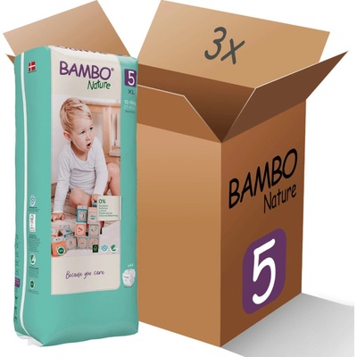 Výhodné balení 3x Bambo Nature 5 XL (12-18kg / 44ks v balení) - Indikátor vlhkosti - Flexibilní opasek a nožní manžety bez obsahu latexu. - Plenky Bambo Nature neobsahují...