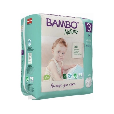 Dětské pleny Bambo Nature 3 M (4-8kg / 52ks výhodné balení) jsou měkké, pohodlné a udržují i nejcitlivější pokožku stále v suchu a to i přes noc. - Indikátor vlhkosti - Flexibilní opasek a nožní manžety bez obsahu latexu. - Plenky Bambo Nature neobsahují parfémy ani...
