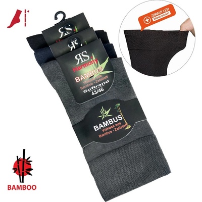 Vysoce kvalitní bambusové elastické klasické jednobarevné zdravotní ponožky RS s volným nesvíravým lemem bez gumiček.