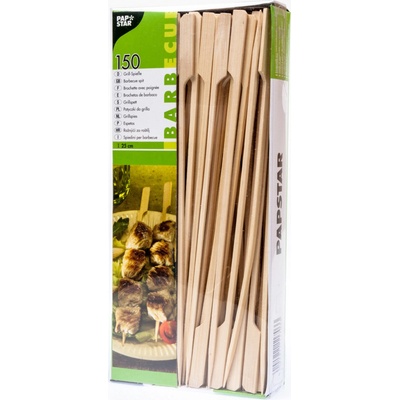 -- Grilovací bambusové špejle se idálně hodí pro masové špízy, šašliky, ražniči, či grilovanou zeleninu. Špejle mají úchyt pro snadnější manipulaci.Balení obsahuje 150 kusů.