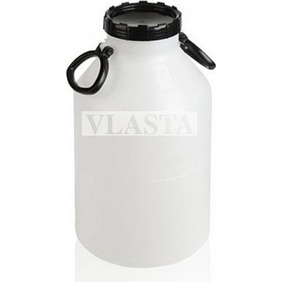 Plastová širokohrdlá konev (sud) se šroubovacím víkem o objemu 30 litrů.
