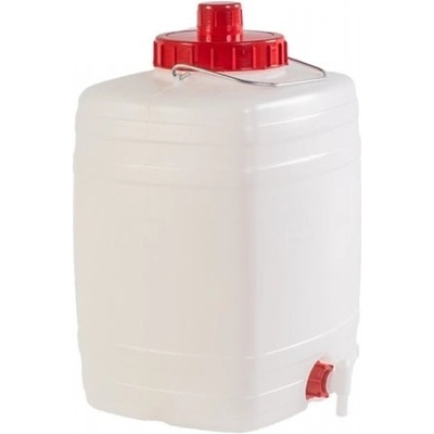 Plastový barel s otočným uzávěrem a výpustným kohoutkem je určen pro transport a skladování tekutin. Má certifikát pro kontakt s potravinami. Výška: 42 cm, šířka: 27 cm. Objem: 20 l.