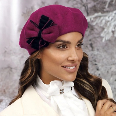 Elegantní dámský baret vyrobený z certifikované vlny. Fuchsiový baret zdobí vlněná mašle barvy. Mašle vytvořená kombinací sametu a vlny ve stejném tónu barvy. Vše je výsledkem...