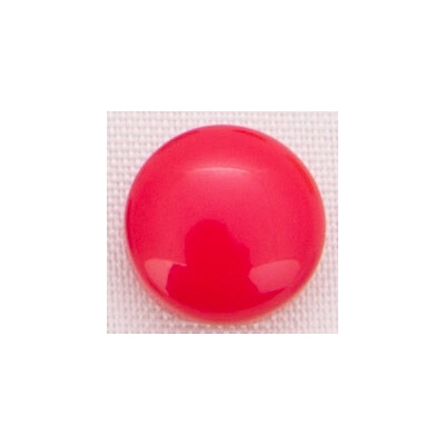 Plastový knoflík ve tvaru čočky s otvorem na přišití na spodní straně.