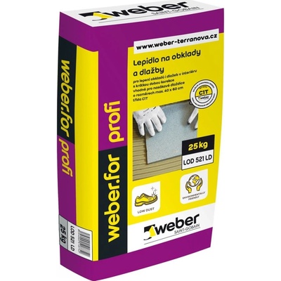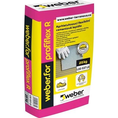 Weberfor profiflex R mrazuvzdorné lepidlo cementové C2TF S1 Rychletvrdnoucí flexibilní lepidlo na bázi anorganického pojiva, plniva a modifikujících přísad. Pro minerální...