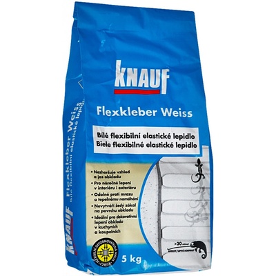 Suché flexibilní mrazuvzdorné cementové lepidlo bílé barvy pro lepení skleněných obkladů, dlažby, ozdobných prvků, sklokeramiky, skleněných tvárnic, desek z přírodního a...