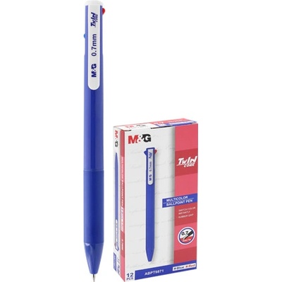 Tříbarevné kuličkové pero s pohodlným a protiskluzovým úchopem. Disponuje třemi základními barvami modrou, červenou a černou, ideální pro všestranné psaní. Hrot o šířce 0,7...