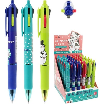 Kuličkové pero čtyřbarevné "So many Cats" s plastovým tělem v pestrých barvách. Pero má gumový úchop pro pohodlné psaní. Náplň: modrá, zelená, červená a černá barva. Průměr...