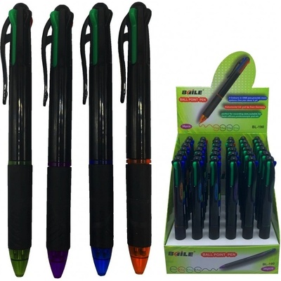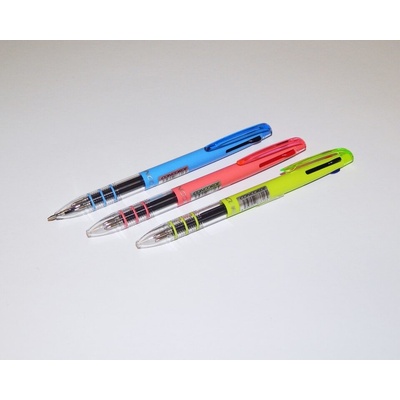 Kuličkové pero 4 barevné. Vyměnitelná náplň RFNS - barvy náplní černá, červená, modrá a zelená - olejový inkoust. Plastové tělo. Tělo pera v barevných variantách. Šíře stopy:...