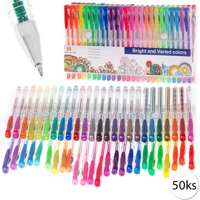 Barevná sada gelových per pro psaní, kreslení a kreativní projekty. V balení najdete 50 odstínů včetně třpytivých, metalických, fluorescenčních a pastelových barev. Pera píší...