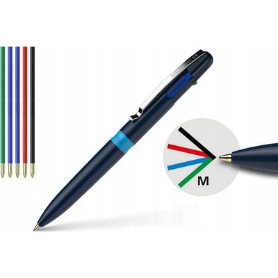Čtyřbarevné plastové kuličkové pero Concorde Quatro s gumovým úchopem pro lepší držení. Barvy náplní: modrá, červená, černá, zelená. Šířka hrotu 0,5 mm. Cena za ks. Vhodná...