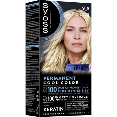 SYOSS BARVA NA VLASY 9_5 MRAZIVÁ POPELAVÁ BLOND Barva na vlasy Syoss 9_5 Mrazivý popelavý blond – trvalé barvení, které neutralizuje nežádoucí žluté tóny a zajišťuje až 100%...