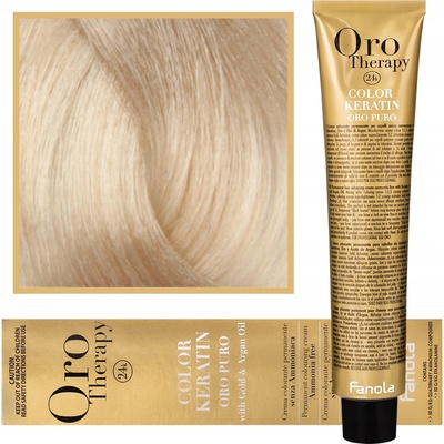 Krémová barva na vlasy Fanola Oro Therapy 24K obohacena o keratin, 24K zlato a arganový olej, zajistí vašim vlasům ten nejlepší barevný výsledek a ochranu při barvení. Kryje...