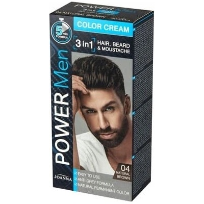 Joanna Power Men 3v1, barva na vlasy, vousy a knír, 03 natural brown, 1 ks EAN: 5901018018306 Joanna Power Men 3v1 - barva na vlasy, vousy a knír pro muže barva 03 natural...