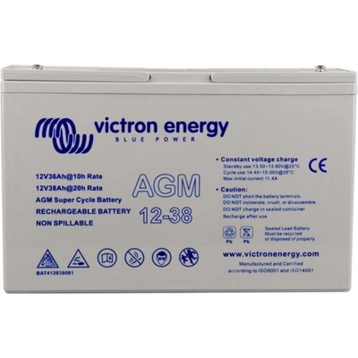 Solární baterie Victron Energy AGM Super Cycle 38Ah Baterie AGM Super Cycle jsou výsledkem nejnovějšího vývoje elektrochemie akumulátoru. Pasta pozitivních desek je méně...
