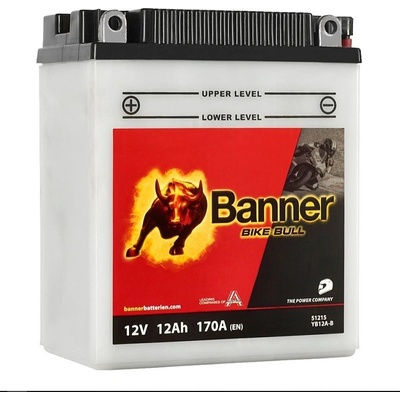 baterie 12V, YB12A-B, 12Ah, 170A, BANNER Bike Bull 134x80x160 Popis produktu: napětí: 12V startovací proud: 170A pólování: + / - (plus vlevo) rozměry: 134x80x160 mm (délka x...