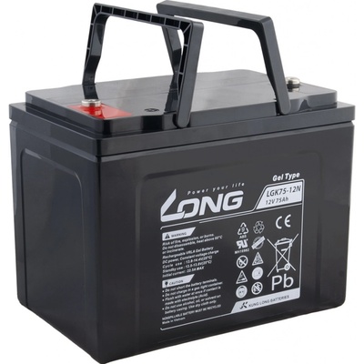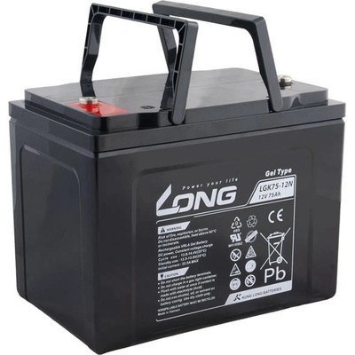 Long 12V 75Ah olověný akumulátor DeepCycle GEL F16 Konektory: F16 Rozměry (DŠV): 260 x 170 x 202 mm Parametry: Konektory: F16 Napětí: 12 V Kapacita: 75...