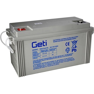 Baterie olověná 12V 120Ah Geti pro soláry Olověný akumulátor Geti je vhodný zejména do solárních a větrných energetických systémů a karavanů, ale i jako náhrada za baterie pro...