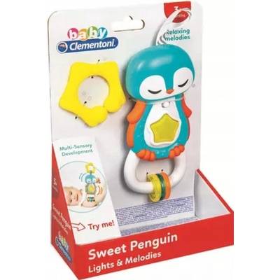 Barevné chrastítko pro nejmenší ve tvaru sladkého tučňáka lze zavěsit na postýlku, kočárek i autosedačku. zvukové efekty a melodie blikající světýlko kroužek a poutko na...
