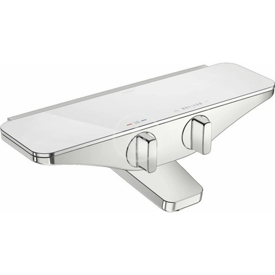 Vanová termostatická baterie pro nástěnnou montáž barva bílá/chrom materiál chrom a bílé sklo prostorná odkládací plocha z bezpečnostního skla bezpečnostní pojistka při 38 °C...