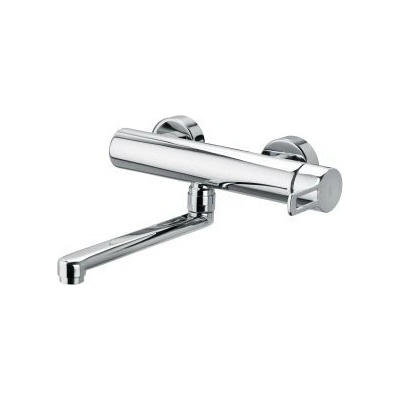 Páková nástěnná dřezová baterie s otočným ramínkem. V oblém designu. V chromovém provedení. Rozteč baterie 150 mm. Výška baterie je 14,5 cm. Ramínko je ve výšce 4,6...