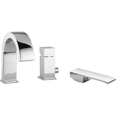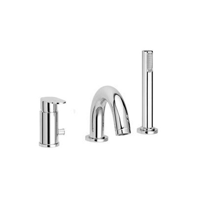 Vanová baterie s dvouotvorovou instalací - provedení chrom - pro instalaci na okraj vany - pákové ovládání - balení obsahuje vanovou baterii a tyčovou ruční sprchu -...