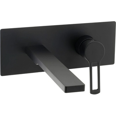 Páková podomítková umyvadlová baterie včetně podomítkového tělesa. V hranatém designu. V černém provedení. S matným povrchem.