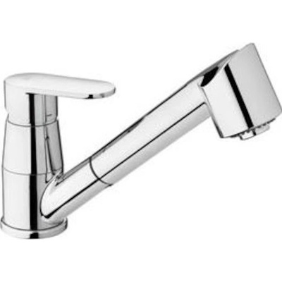 Páková stojánková dřezová baterie s vytahovací sprškou. V oblém designu. V chromovém provedení. Výška baterie je 20,6 cm. Ramínko je ve výšce 14,3 cm.