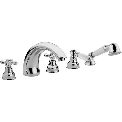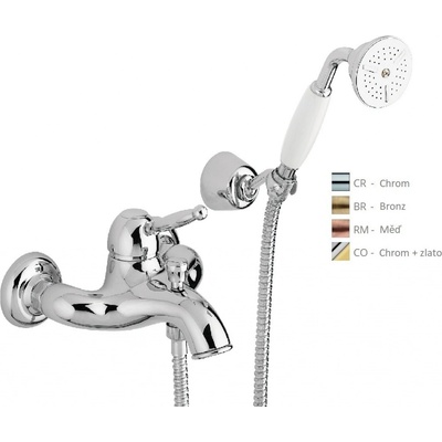 Kohoutková na hranu vany vanová baterie se sprchovým setem. V retro designu. V chromovém provedení.