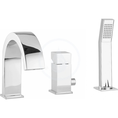 Vanová tříotvorová stojánková páková baterie - 3 vývody - vytahovací ruční sprcha - raménko bez perlátoru - přepínač - set 5 nerezových hadic - flexibilní hadice se...