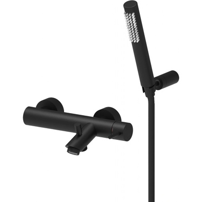 Vanová nástěnná páková baterie se sprchovým příslušenstvím - povrchová úprava černý mat - kartuše 35 mm - šířka baterie 262 mm - rozteč 150 mm - krytky etážek o průměru...