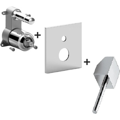 Vrchní sada sprchové podomítkové baterie, tělo baterie a nástěnná destička - provedení chrom - ovládání pákou - vrchní deska baterie 154 x 192 mm, ABS plast - pro 2...