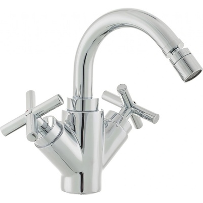 Kohoutková stojánková bidetová baterie s výpustí. V chromovém provedení. Výška baterie je 21,5 cm. Ramínko je ve výšce 15,2 cm.