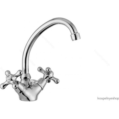 Kuchyňská stojánková baterie, s pružným ramenem - provedení chrom - páková směšovací - flexibilní výtok a koncovka osazená perlátorem - se sprchovou koncovkou Happy (2...