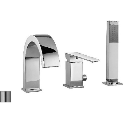 Vanová baterie s tříotvorovou instalací provedení nerez pro instalaci na okraj vany pákové ovládání balení obsahuje baterii, vanový výtok a tyčovou ruční sprchu výška baterie...