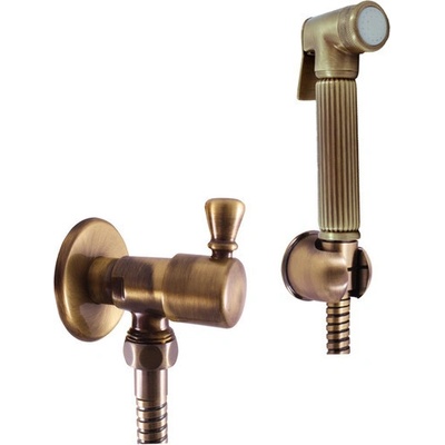 Bidetová baterie se sprchou na jednu vodu, stará mosaz . Tato baterie se skláda z: - rohový ventil s keramickým vrškem RV0112SM - sprchová kovová hadice MH1001SM - délka 100...