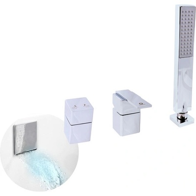 Vodovodní baterie vanová stojánková čtyřotvorová s keramickým přepínačem MD0449, vodopádovým výtokem VOD6301, samonavíjecí sprchou a 2m hadicí. tato baterie je vybavena...