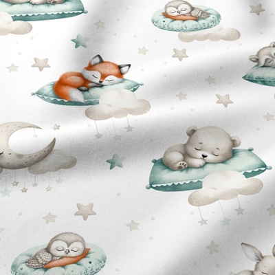 Bavlněné látky, metráž. Zvířátka na Mentolovém