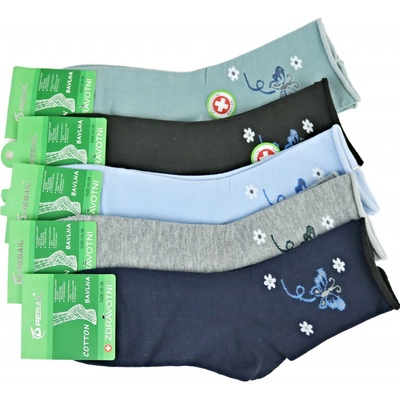 Dámské bavlněné zdravotní ponožky. Ponožky mají zdravotní lem Složení: 95% bavlna 5% polyester Prát na 30°C Ponožky jsou dodávány se vzorem dle aktuální skladové zásoby