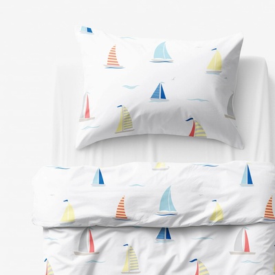 Vyplujte do říše snů s tímto povlečením s motivem barevných plachetnic! Tento hravý design rozveselí každý dětský pokoj. Podkladem povlečení je bílá barva. Je ušito z kvalitní a...