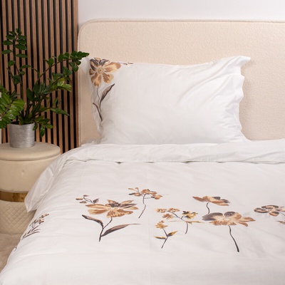 Povlečení Carmen přináší eleganci a jemnost do každé ložnice díky svému květinovému designu. Na bílém podkladu vynikají akvarelové motivy květů v odstínech růžové, žluté a...