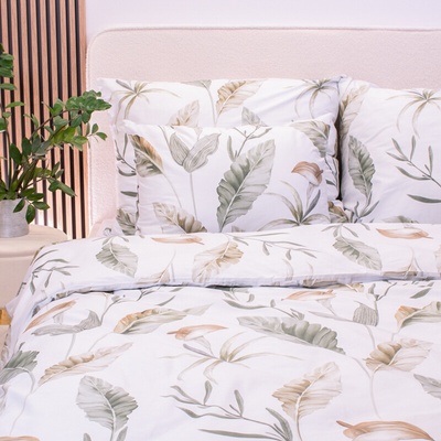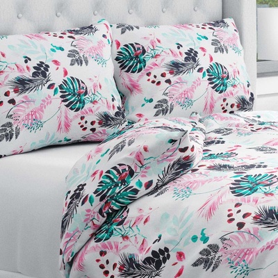 Bavlněné ložní povlečení se vzorem růžových a zelených tropických listů na bílém podkladu. Je ušité z hustě tkaného 100% bavlněného plátna s certifikátem zdravotní nezávadnosti...