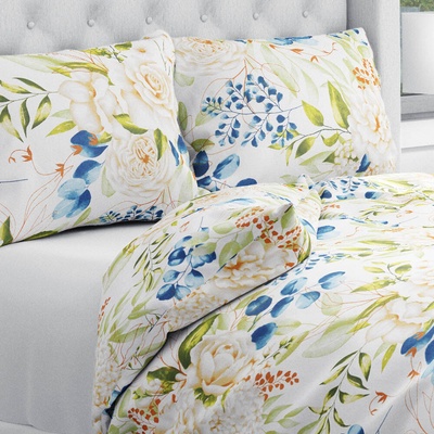 Bavlněné ložní povlečení se vzorem květů a modro-zelených listů na bílém podkladu. Je ušité z hustě tkaného 100% bavlněného plátna s certifikátem zdravotní nezávadnosti Oeko-Tex...