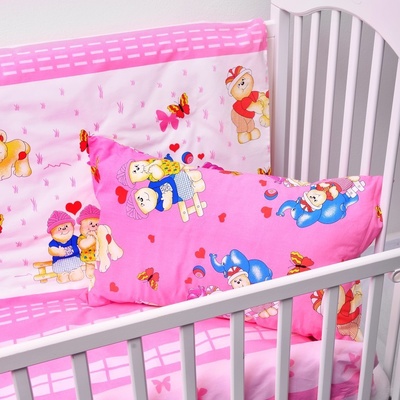 Dětské bavlněné povlečení do postýlky s milým dětským motivem růžového retro stylu. Je ušité z hustě tkaného 100% bavlněného plátna s certifikátem zdravotní nezávadnosti...
